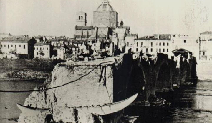 La prima arcata del ponte verso il Borgo viene distrutta.