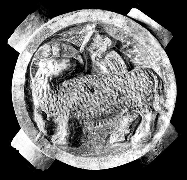 Nella sezione centrale è adornata dall'Agnus Dei", l'agnello di Dio con testa rivolta indietro e vessillo.