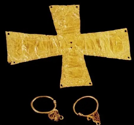 L’altra crocetta legata a questo ritrovamento, databile al VII secolo, è invece di dimensioni maggiori e dotata di una decorazione più complessa.
